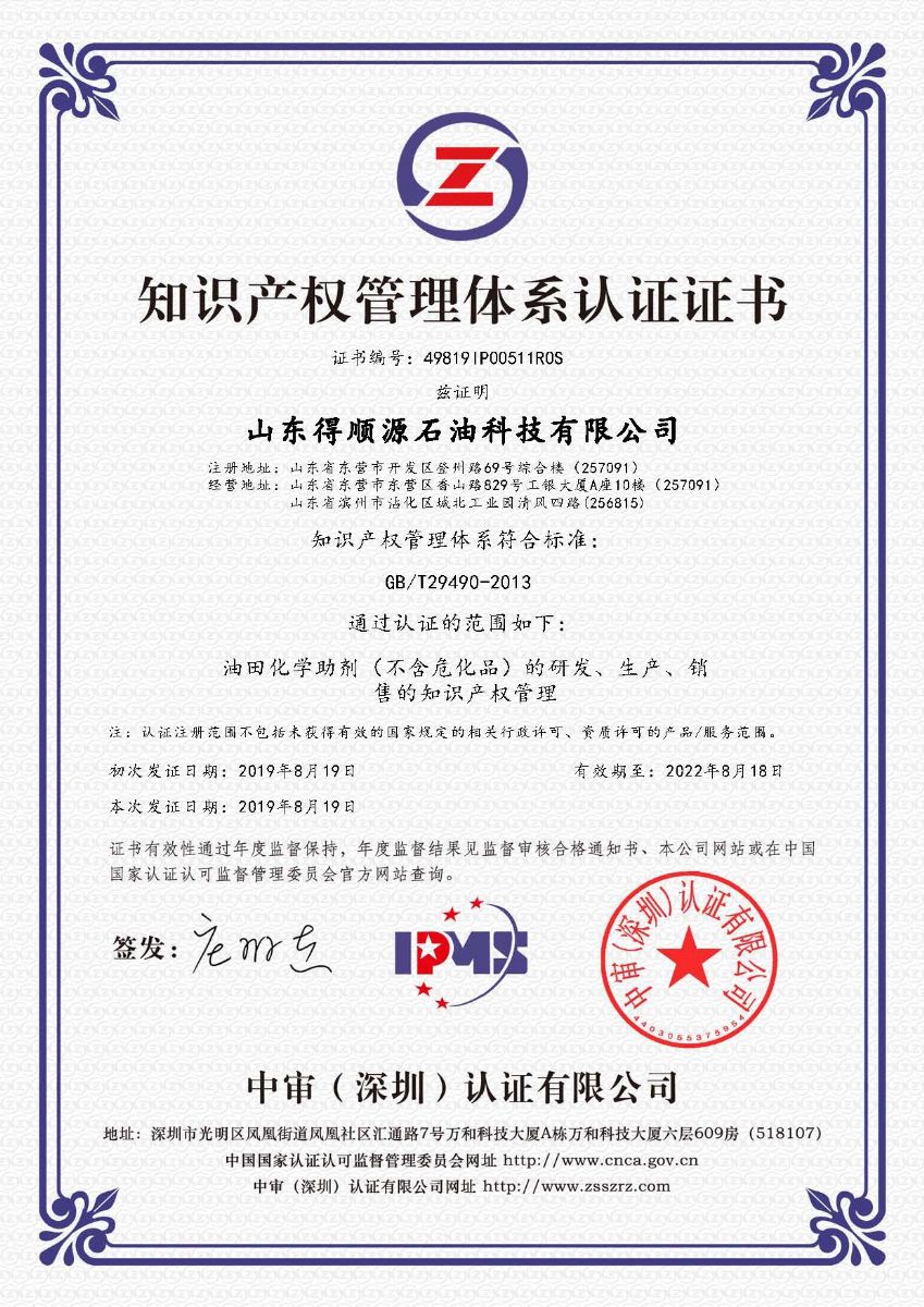 2019年8月20日,公司順利通過了中審(深圳)認(rèn)證有限公司的知識(shí)產(chǎn)權(quán)管理體系認(rèn)證并取得證書。