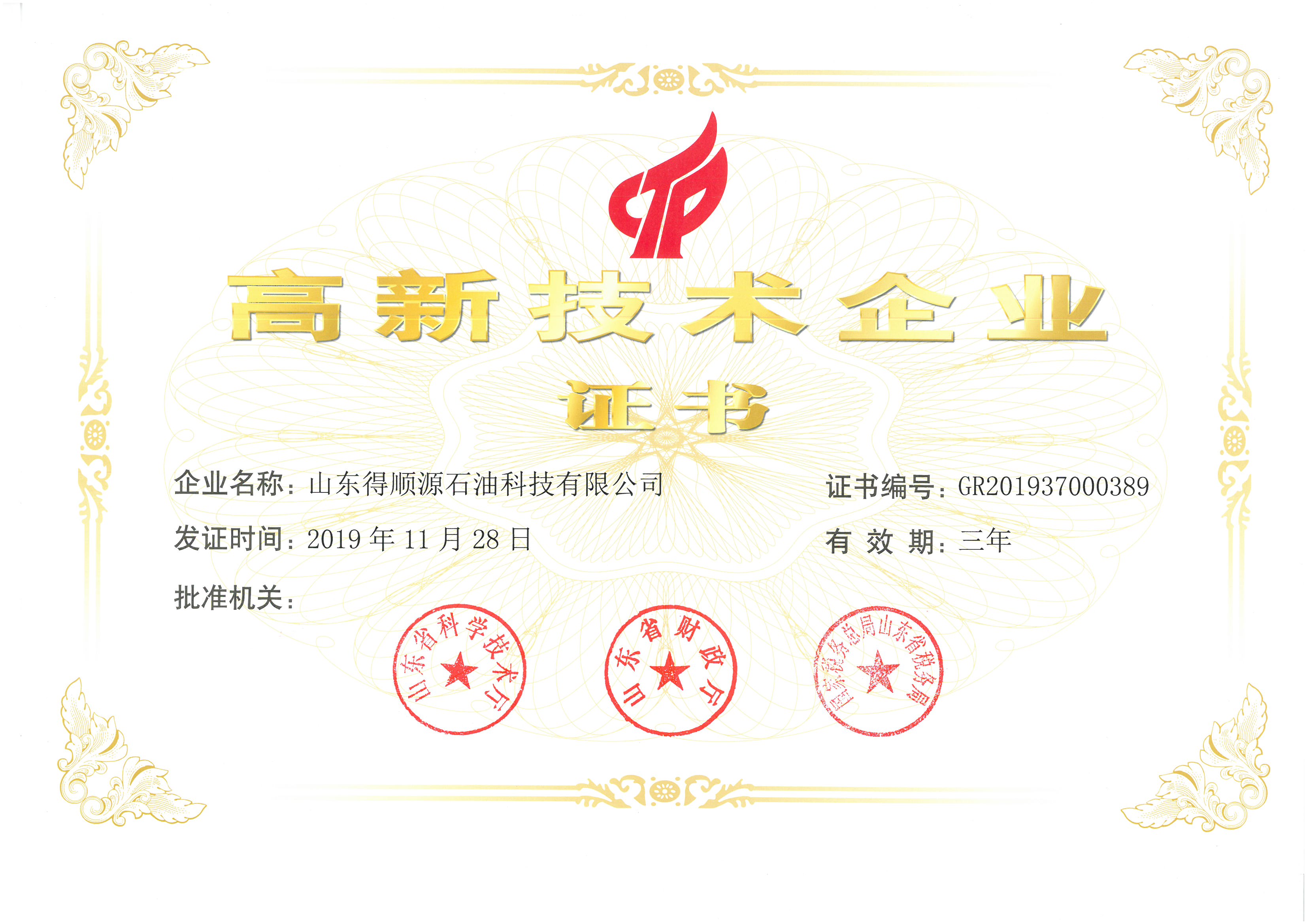 2020年4月30日,我公司順利通過高新技術(shù)企業(yè)認定,獲得山東省科學(xué)技術(shù)廳、山東省財政廳、國家稅務(wù)總局山東省稅務(wù)局聯(lián)合頒發(fā)的“高新技術(shù)企業(yè)證書”。